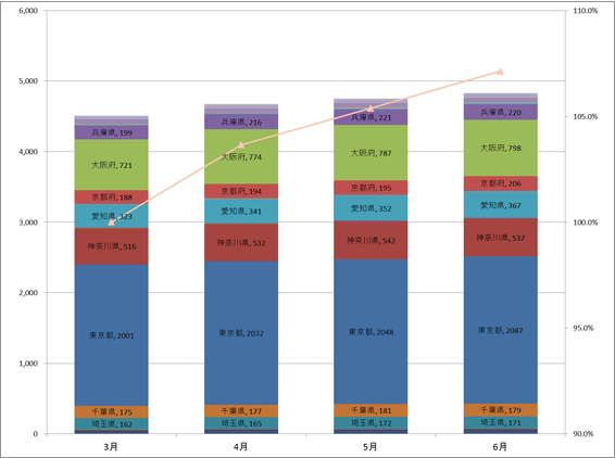 4) 都道府県別 車両台数推移(主要8社 2012.4~2012.6)