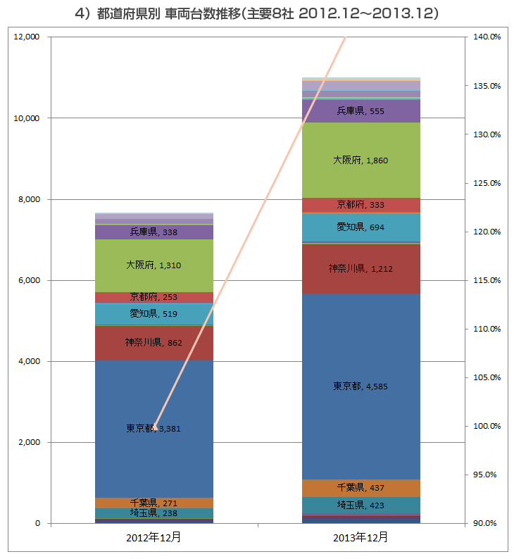 4) 都道府県別 車両台数推移(主要8社 2012.12~2013.12)